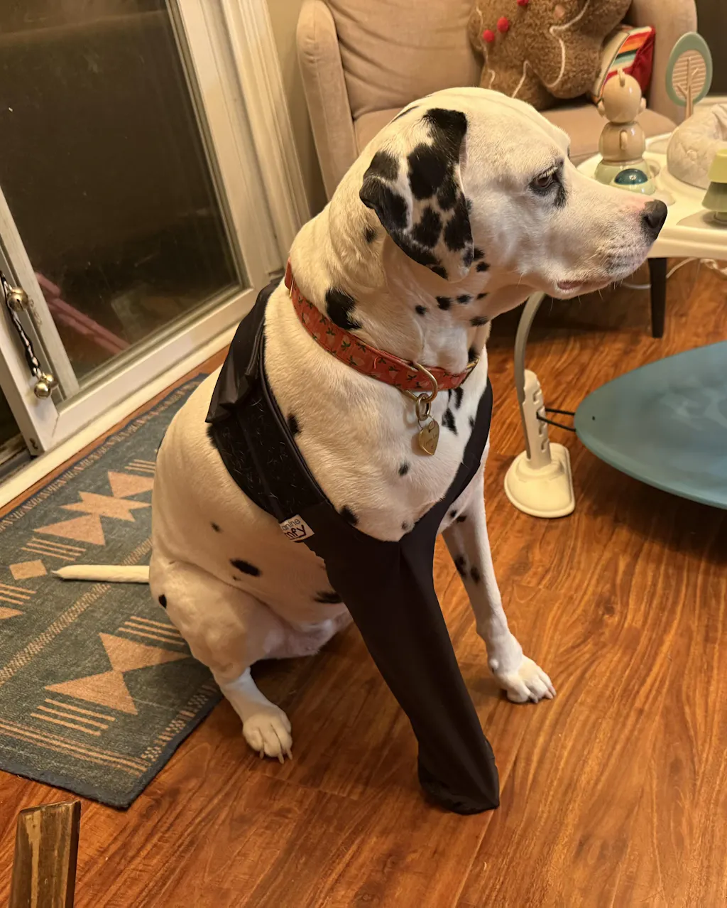 The Canine Comfy Front Leg Sleeve is perfect when only a front leg or paw needs to be covered. We make the sleeve with and without paw coverings. The paw covering is made with a non skid bottom so you don't have to worry about your healing pup sliding all over.